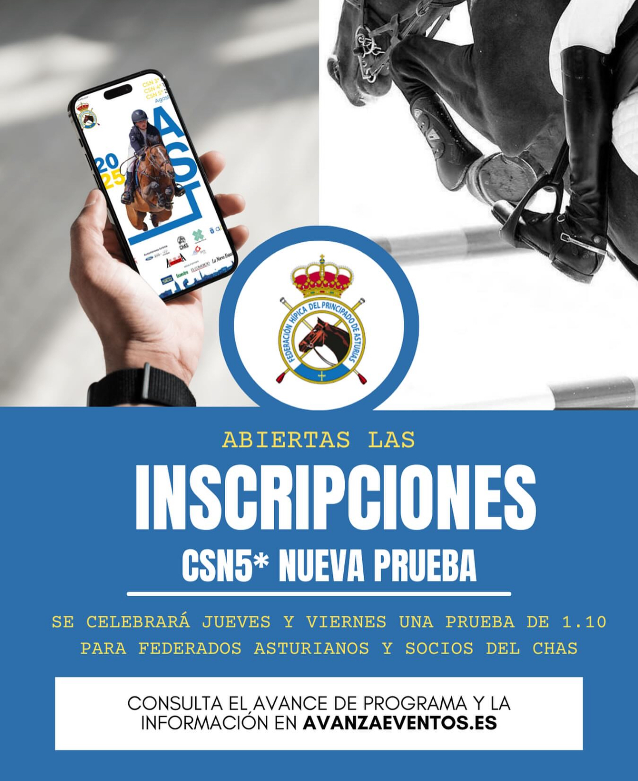 🏆El próximo jueves 22 al sábado 24 de agosto se celebrará en el CHAS el último de los tres nacionales de verano organizados por la Federación Hípica del Principado de Asturias: el CSN5*