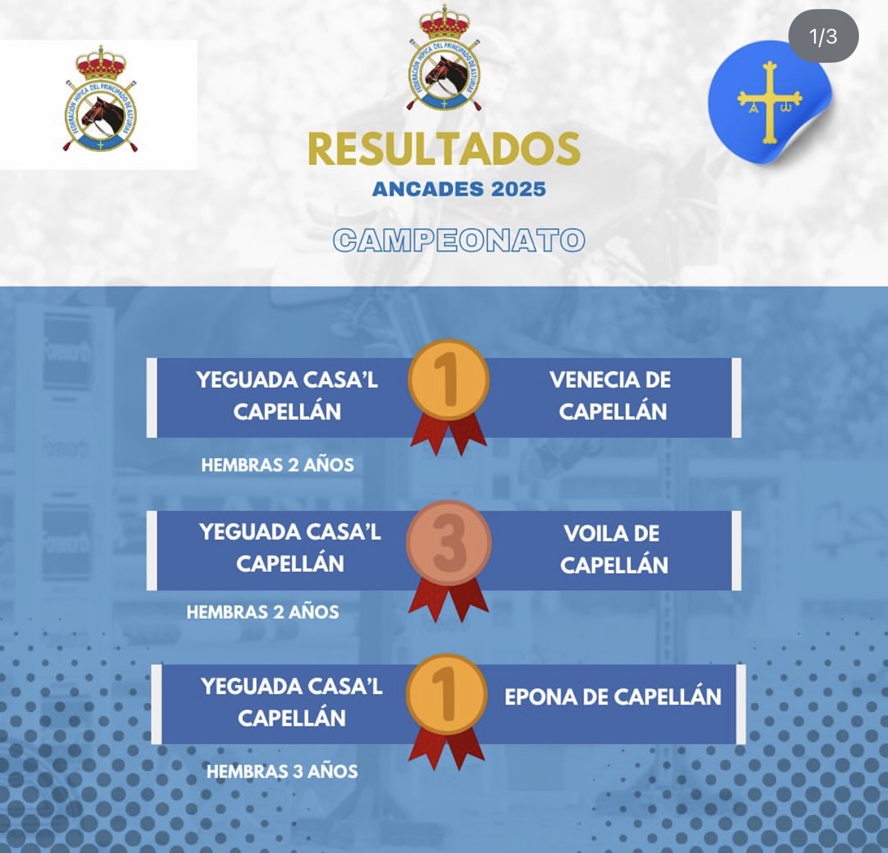 Desde la Federación Hípica del Principado de Asturias felicitamos a ambas yeguadas por estos resultados que consolidan a nuestra región como referente en la cría de caballos de deporte. 💙⚔️