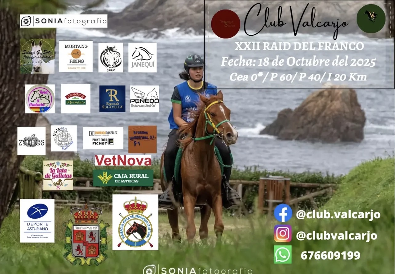 El día 18 de Octubre de 2025, se correrá el XXII Raid Hípico Del Franco en La Caridad, (Asturias). Prueba organizada por el Club Valcarjo.