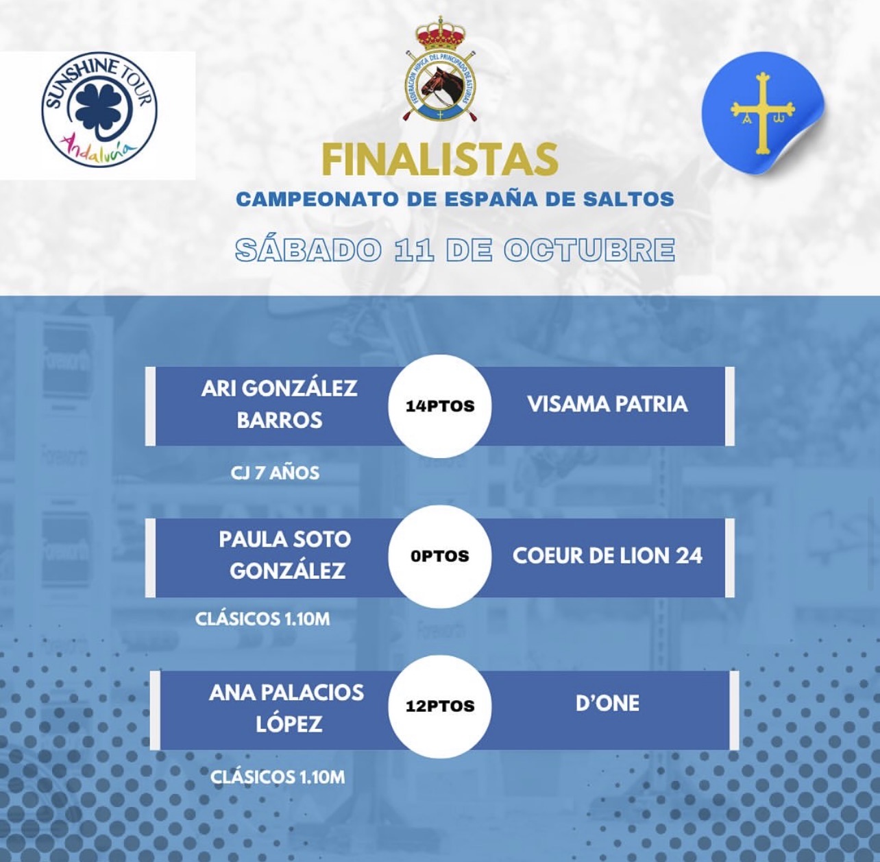 A solo dos días de finalizar el último de los Campeonatos de España de esta temporada en el @sunshine_tour_montenmedio os mostramos los jinetes y amazonas que pasan a disputar mañana la final en sus categorías.