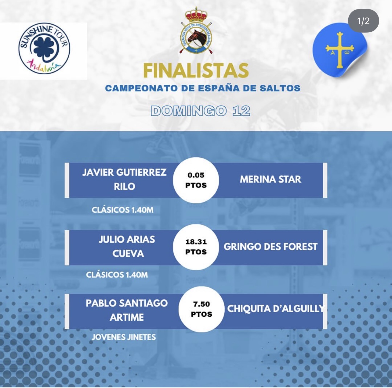 Adicionalmente a los finalistas presentados en el otro post, os mostramos los jinetes asturianos que pasan a la final en sus categorías y que correrán el domingo 13 de octubre.