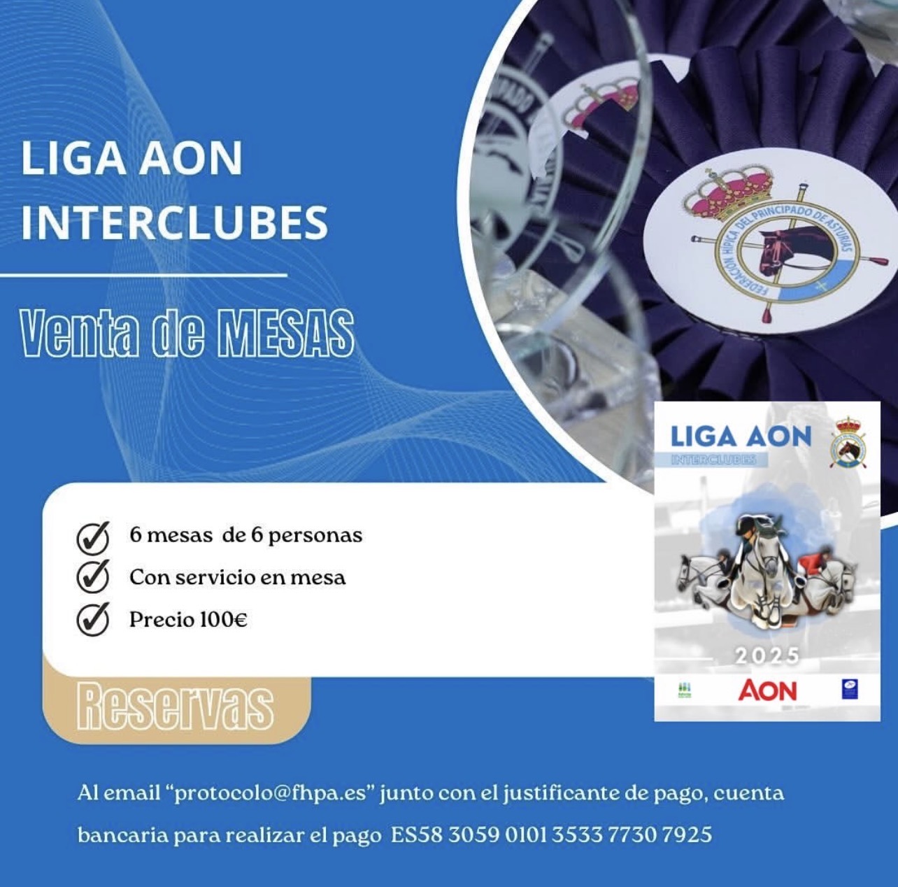 Para reservar el tuyo solo tienes que enviar un email a “𝗽𝗿𝗼𝘁𝗼𝗰𝗼𝗹𝗼@𝗳𝗵𝗽𝗮.𝗲𝘀” 𝗰𝗼𝗻 𝗲𝗹 𝗻𝗼𝗺𝗯𝗿𝗲 𝗱𝗲 𝗹𝗮 𝗿𝗲𝘀𝗲𝗿𝘃𝗮 (persona) en el concepto 𝘆 𝗲𝗹 𝗷𝘂𝘀𝘁𝗶𝗳𝗶𝗰𝗮𝗻𝘁𝗲 𝗱𝗲 𝗽𝗮𝗴𝗼. 𝗘𝗹 𝗮𝗯𝗼𝗻𝗼 𝘀𝗲 𝗿𝗲𝗮𝗹𝗶𝘇𝗮𝗿𝗮́ 𝗲𝗻 𝗹𝗮 𝘀𝗶𝗴𝘂𝗶𝗲𝗻𝘁𝗲 𝗰𝘂𝗲𝗻𝘁𝗮: 𝗘𝗦𝟱𝟴 𝟯𝟬𝟱𝟵 𝟬𝟭𝟬𝟭 𝟯𝟱𝟯𝟯 𝟳𝟳𝟯𝟬 𝟳𝟵𝟮𝟱