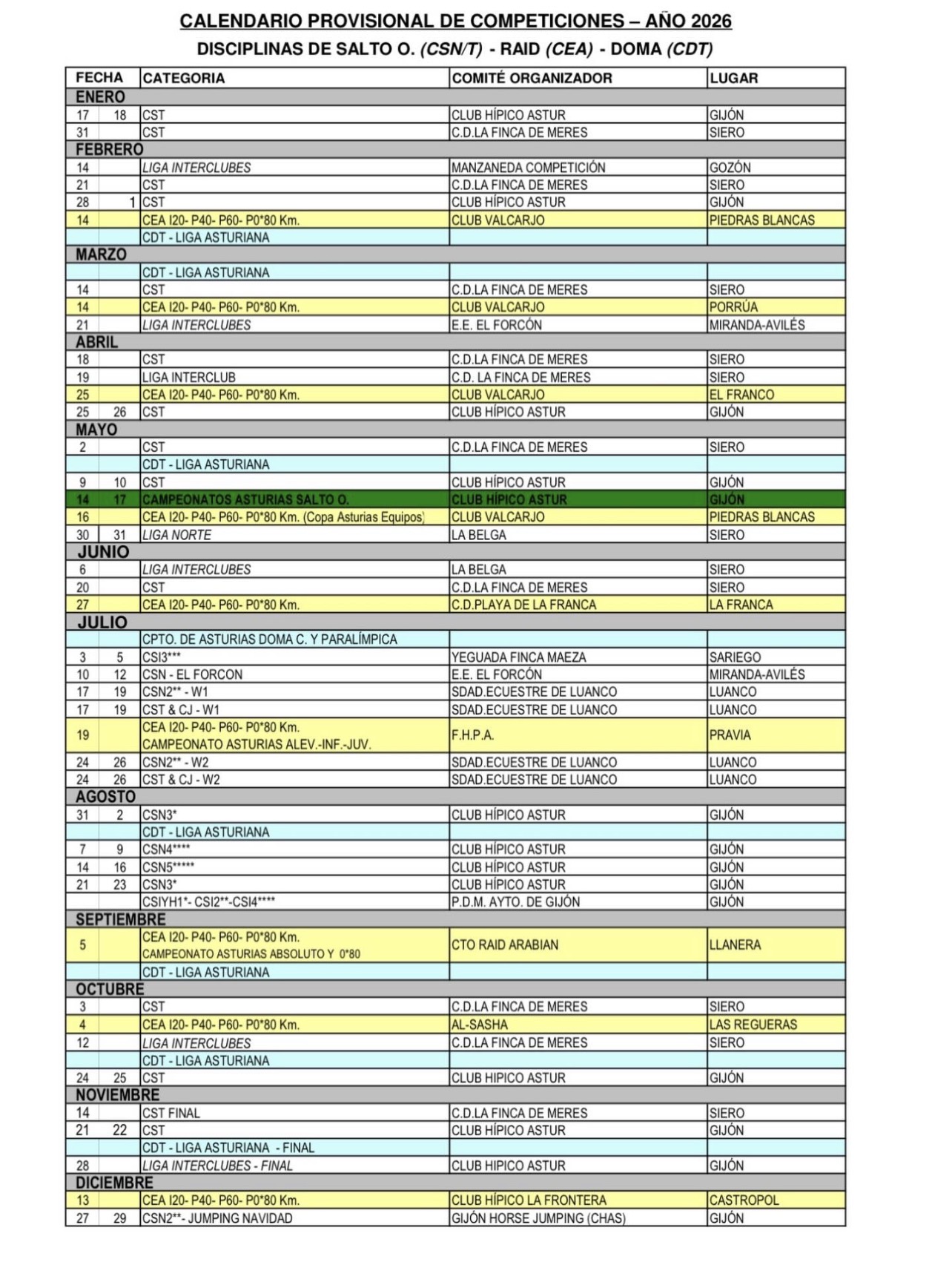 🗓️ Os presentamos el 𝗰𝗮𝗹𝗲𝗻𝗱𝗮𝗿𝗶𝗼 𝗽𝗿𝗼𝘃𝗶𝘀𝗶𝗼𝗻𝗮𝗹 de las competiciones para esta temporada 2026. Las tres disciplinas se ven representadas a través de colores como: