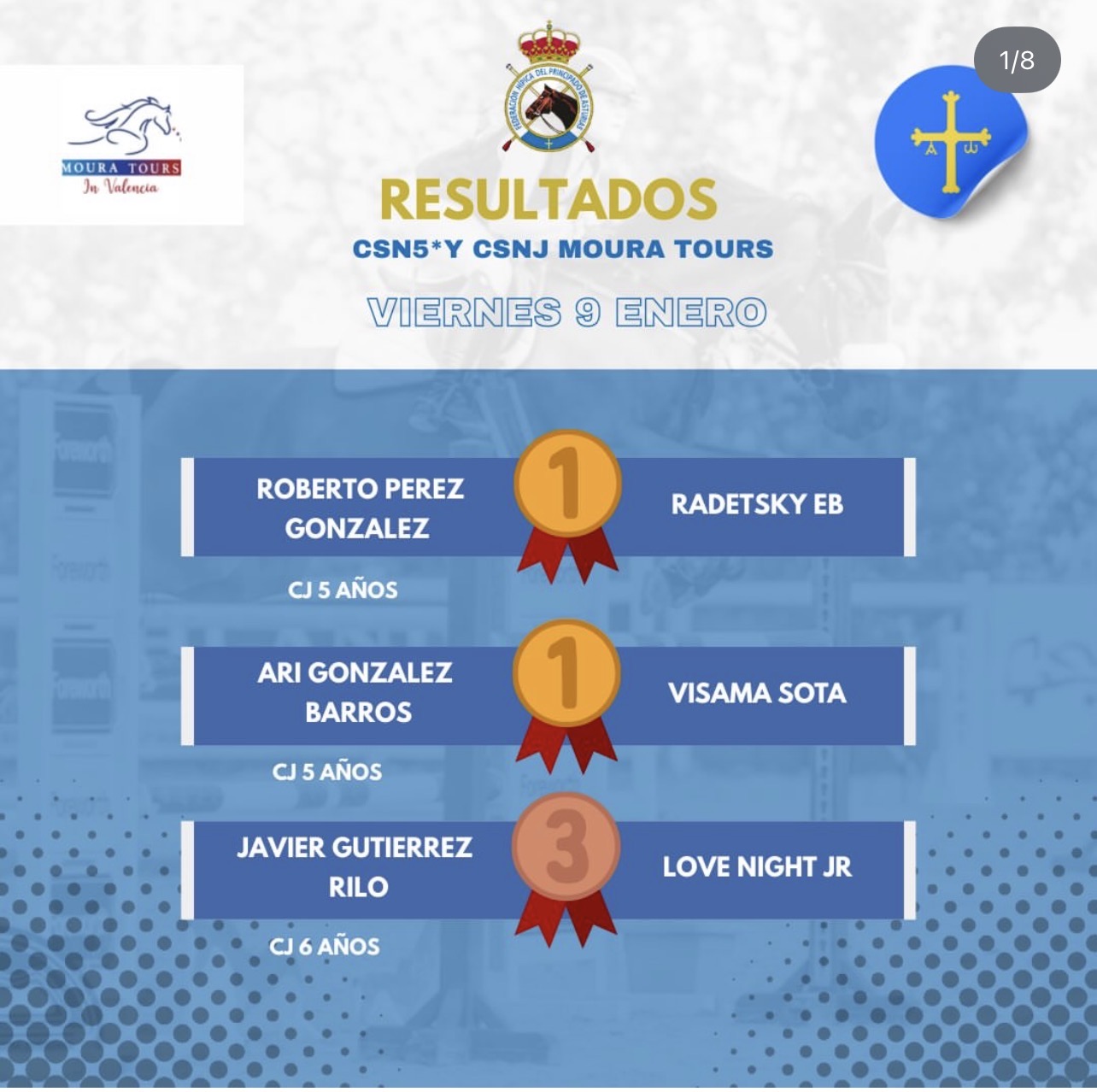 🍾Resultados de los asturianos en el primer concurso del año, el CSN5* Moura Tours🍾